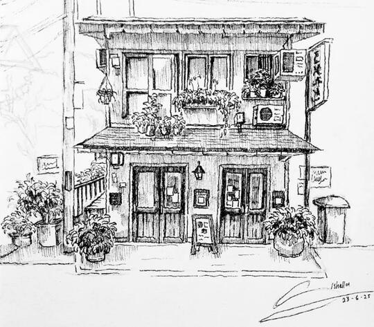 Bringing Sketch to 3D World!A cozy two-story Japanese-style bakery brought to life from a simple sketch. With red roof tiles, large wooden windows, and warm lighting, every detail — from potted plants to the outdoor AC — adds realism and charm, capturing the peaceful feel of a small-town Japanese bakery.
